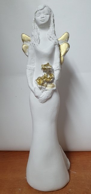 Anioł gipsowy z kwiatami A-38