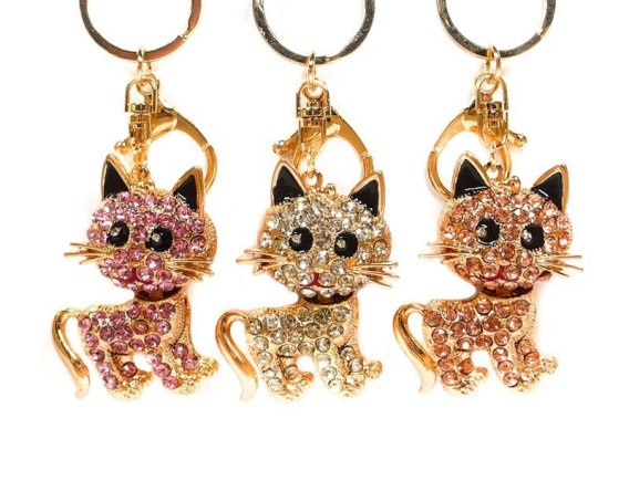 Brelok do kluczy, kotek w cyrkonie, mix kolorów