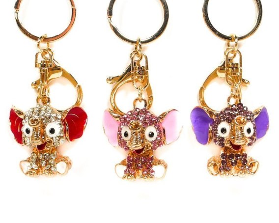 Brelok do kluczy, słonik w cyrkonie, mix kolorów