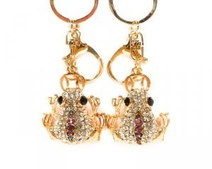 Brelok do kluczy, żaba cyrkonie, mix kolorów