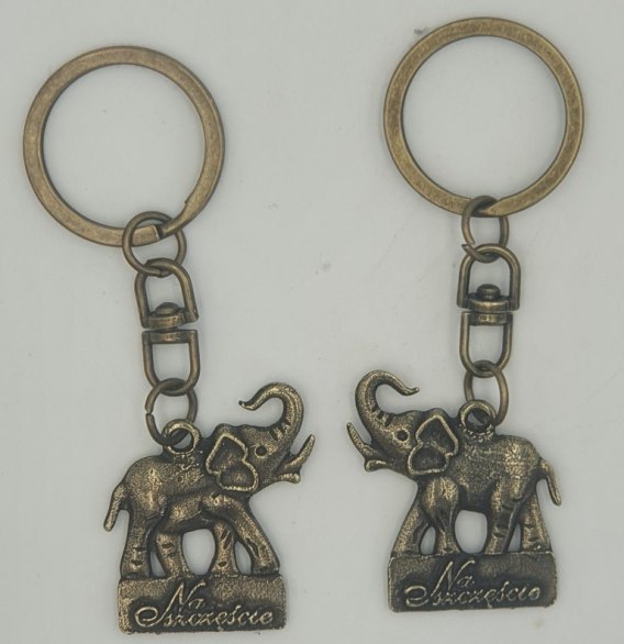 Brelok metalowy słoń z napisem " Na Śzczęście " 10 szt.