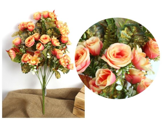 Bukiet mieszany RÓŻA, PIWONIA wys. 53 cm, 11 łodyg (33 kwiaty 3-6 cm) BRZOSKWINIOWY WD-212C
