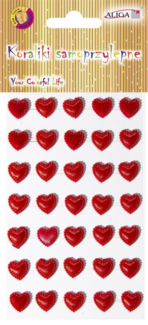 Dżety, kryształki samoprz. serca czerwone rozm.12 mm | JET-2435