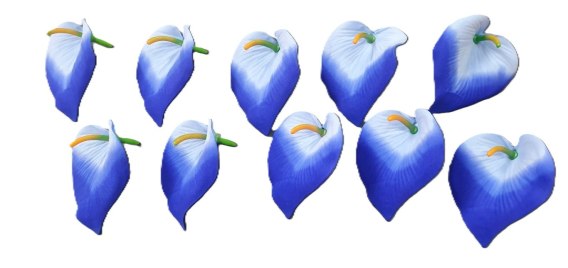 Kalie wyrobowe główki 10 kwiatów niebieskie