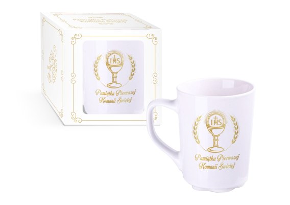 Kubek ceramiczny w kartoniku KOMUNIA KIELICH Z HOSTIĄ B1