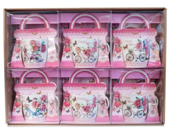 Kubek ceramiczny w ozdobnym opakowaniu - ROWER Z KWIATAMI