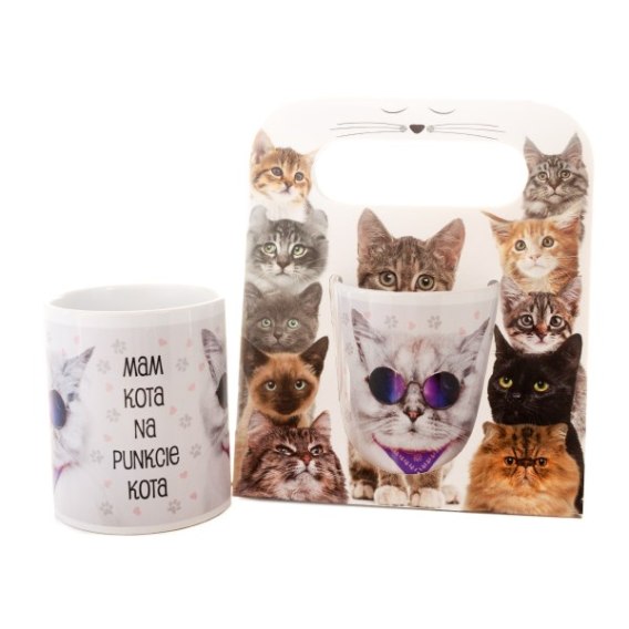 Kubek ceramiczny w ozdobnym opakowaniu z napisem "Mam kota na punkcie kota"