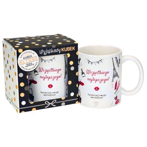 Ze względu na kompaktowe rozmiary oraz estetyczne opakowanie, produkt świetnie prezentuje się na półkach sklepowych. Natomiast kolorowy nadruk przyciąga uwagę klientów, którzy szukają wyjątkowych prezentów urodzinowych. Jeśli zależy Ci na atrakcyjnym, a jednocześnie funkcjonalnym upominku - ten kubek spełni wszystkie oczekiwania.