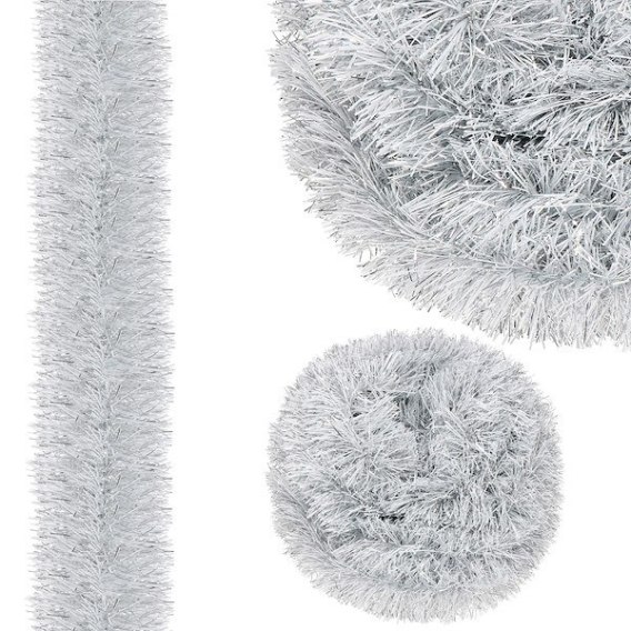 Łańcuch choinkowy 5szt. fi-70 biały z końcówką srebrną 6m