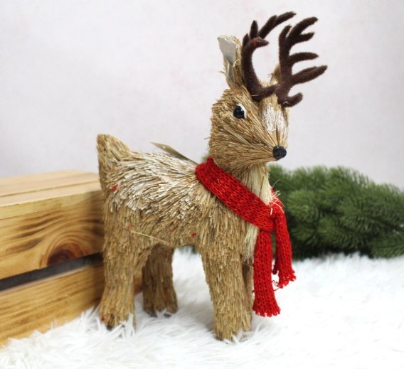 Renifer z siana 28,5 x 17cm z czerwonym szalem ZJS-131