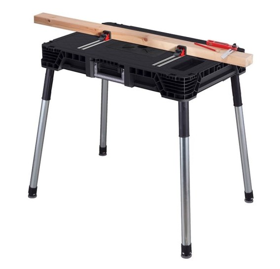 Uchwyt do przenoszenia i lekka konstrukcja sprawiają, że stół można zabrać w dowolne miejsce pracy lub z łatwością przenieść z garażu do ogrodu.