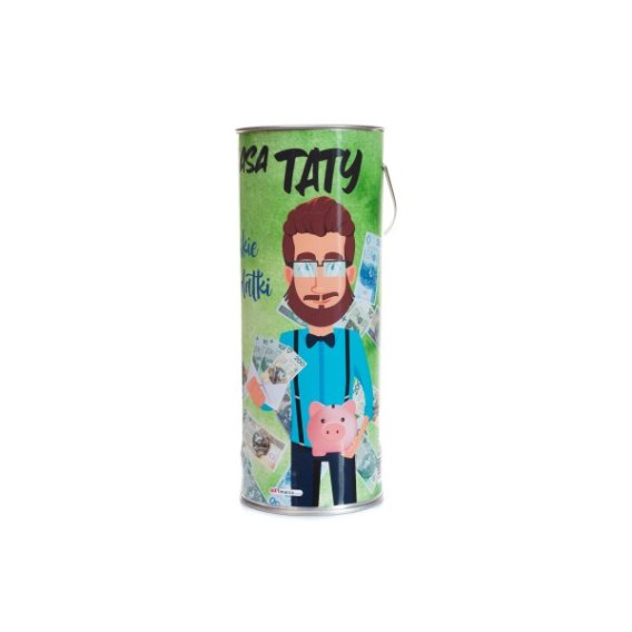 Skarbonka PCV z wciskanym wieczkiem i uchwytem "Kasa Taty na męskie wydatki"