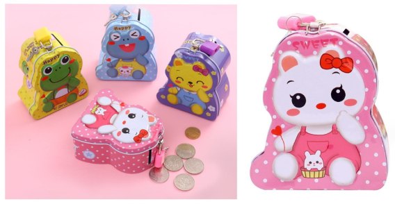 Skarbonka metalowa z kłódką miz zwierzątek 10 x 9 x 5 cm SHO-113