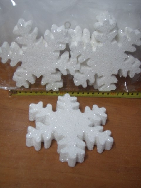 Śnieżynka 4szt. styropianowa z zawieszką biała brokat | 1055