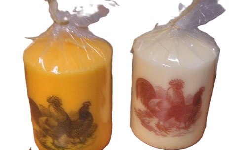 Świeca walec 80 x 100 mm kogut + kura - W80100