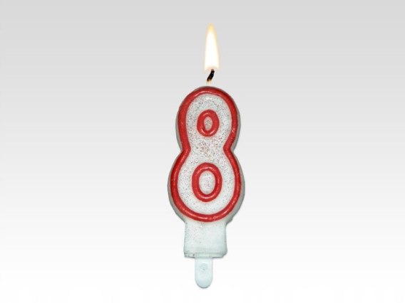 Świeczka urodzinowa ''8'' czerwona z brokatem 62-08