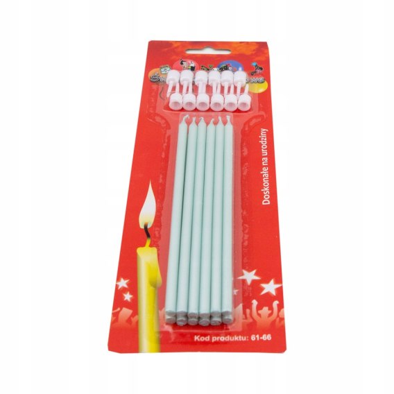 Świeczki urodzinowe 12szt. + podstawki długie NIEBIESKIE | 61-66