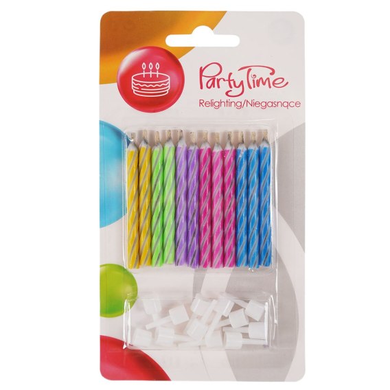 Świeczki niegasnące „psikuski" to świetny sposób na urozmaicenie każdej imprezy urodzinowej. Każda świeczka została zaprojektowana tak, aby po zdmuchnięciu niespodziewanie zapalała się ponownie, wywołując śmiech i zdziwienie u jubilata oraz gości. Zestaw zawiera 12 świeczek, idealnych na tort lub inne słodkie wypieki, dodając zabawy i humoru do każdego przyjęcia. W zestawie znajdują się też podstawki gwarantujące stabilne ułożenie.