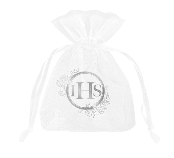 Woreczki z organzy IHS biało-srebrne 10szt.