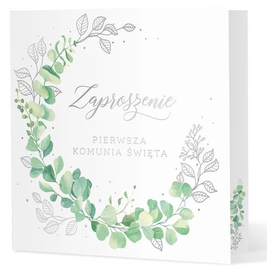Zaproszenie na komunię Eukaliptus srebrny 10szt. 132586