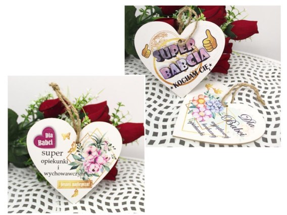 Zawieszka serce BABCIA (mix napisów) 13 x 12,5 cm MM-SEM-B23