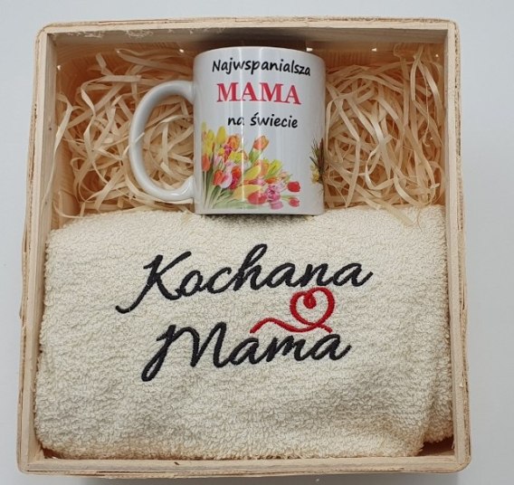 Zest.prezentowy ręcznik+kubek w koszyku MAMA