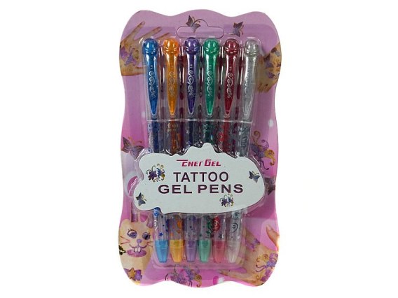 Zestaw 6szt. długopisów żelowych do tatuażu na blistrze