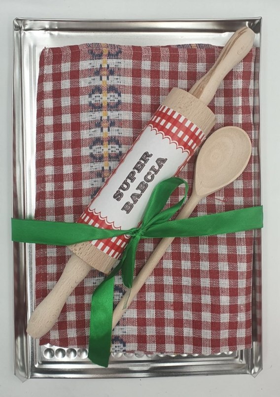Zestaw dla babci - blacha do ciasta,wałek,łyżka,ściereczka