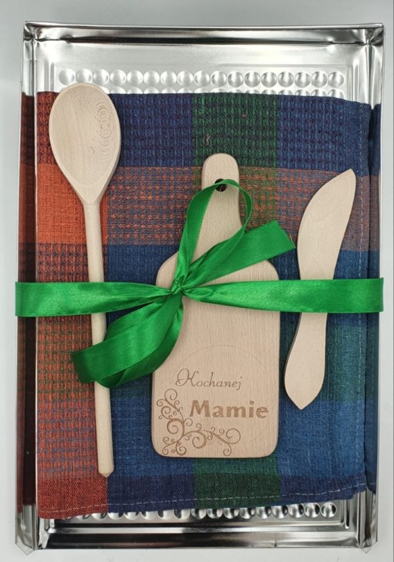 Zestaw dla mamy - blacha do ciasta,deska do krojenia,nożyk,ściereczka,łyżka